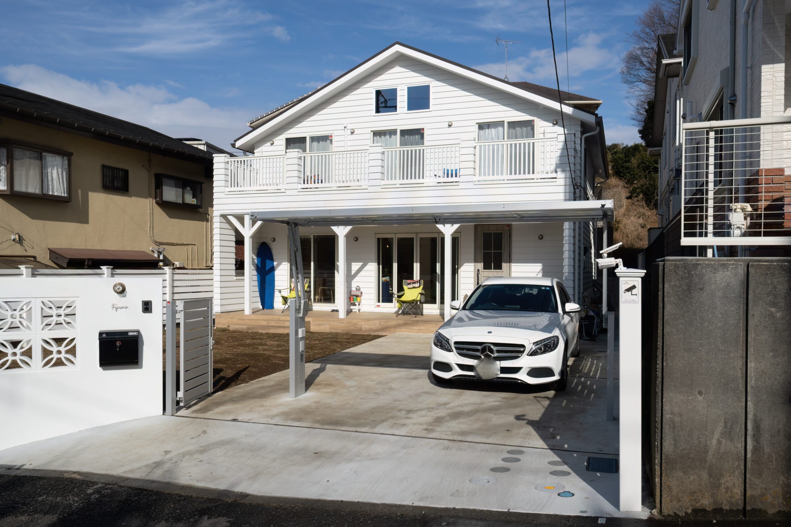 外観は白をベースとした、明るい印象に。遠くから見ても、ぱっと目を惹く華やかさのある住まいです。