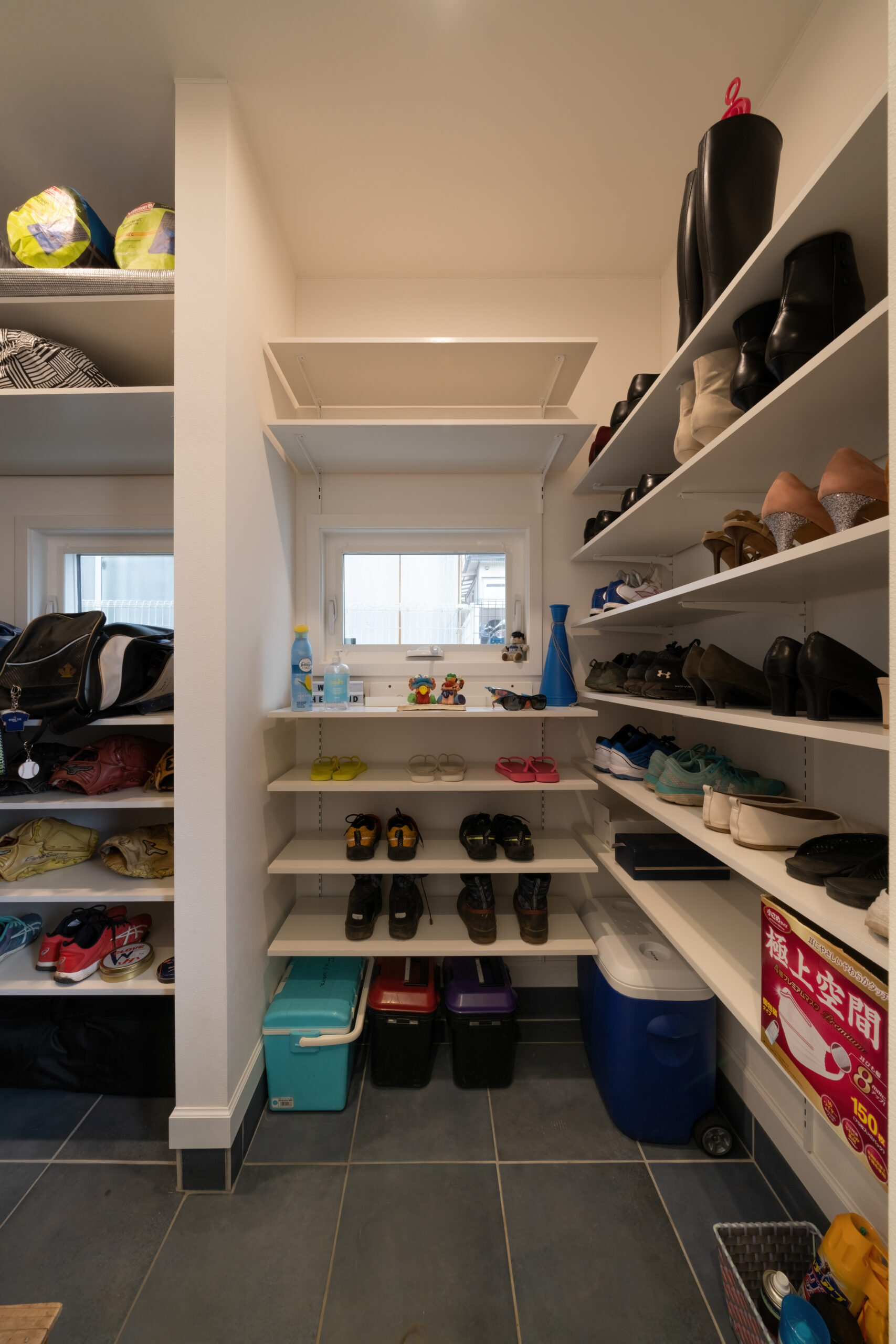 ご主人と息子さんが野球をしているこちらのご家族。お2人のたくさんの荷物を収納でき、なおかつ使い勝手の良さも考慮した上で、プランニングをしています。