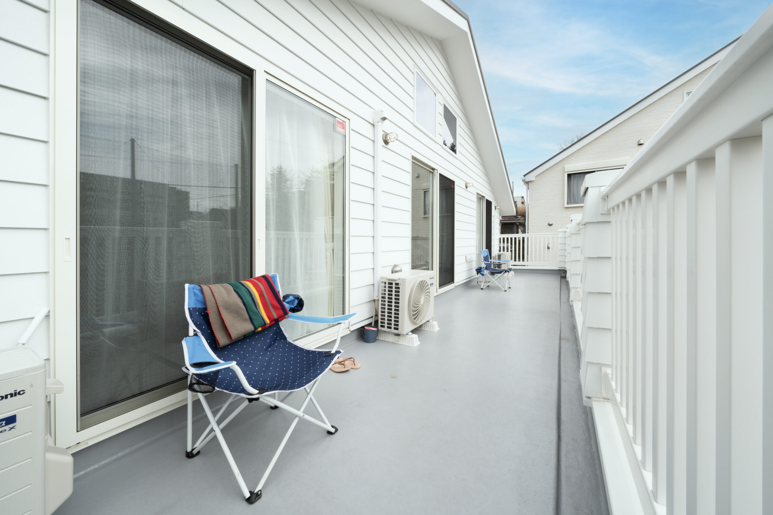冒頭でも少し触れた、ご主人様の希望に沿ってプランニングした広いベランダです。日当たりが良く開放的なため、お天気の良い日は日向ぼっこを楽しむのにぴったり。