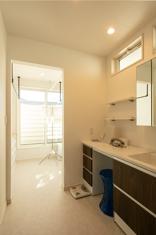 UB→洗濯機→洗面室→物干しスペース→ベランダの導線を考慮したプランニング。