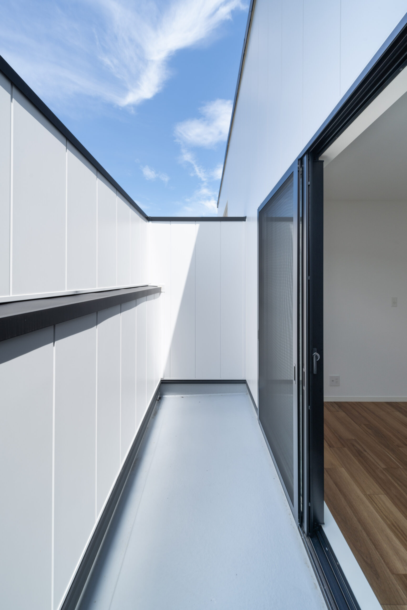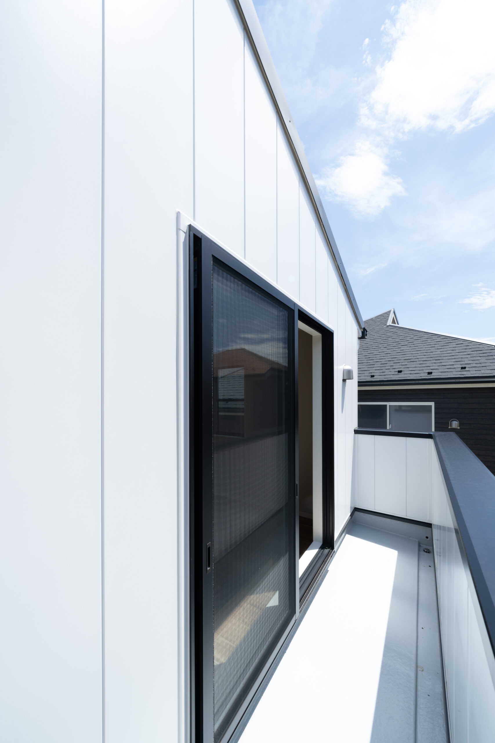2階のベランダは2箇所設置しています。こちらは壁が高いデザインです。プライバシーを確保できるため、ゆったり過ごしたり洗濯物を干したりするのに適しています。