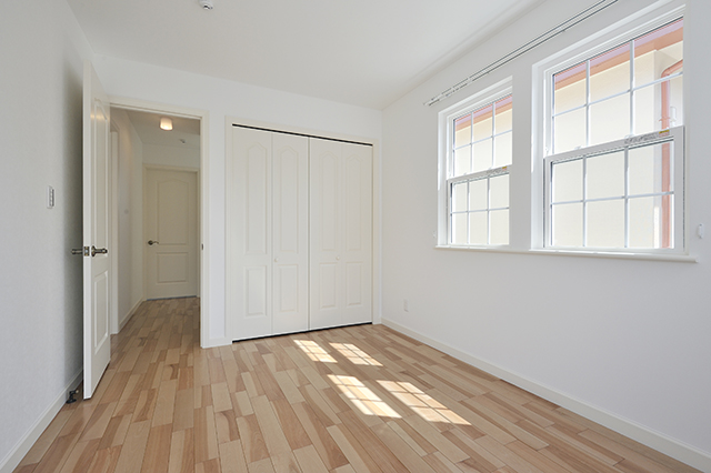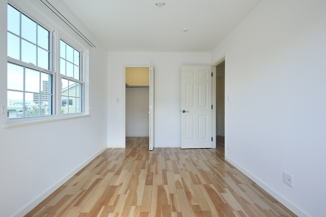 WIC(ウォークインクローゼット)のある主寝室。差し込む光と白い壁で明るい印象に仕上がりました。