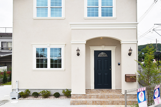 フランスの邸宅や、一軒家の隠れ家レストランを思わせるような、フレンチスタイルの輸入住宅です。濃い目のクリーム系ベースの外観に、ホワイトを基調…