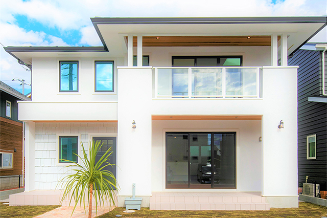 O様の家づくりにおけるリクエストは「豪邸」。まず目を引くのは、まるで映画のワンシーンを思わせるような、白を基調とした外観。外壁は、石灰などの…