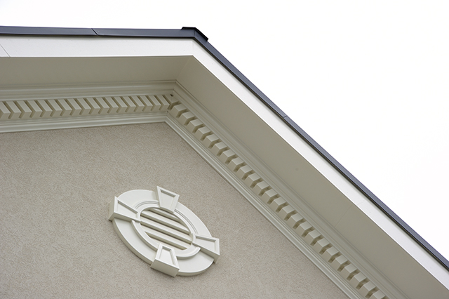 外壁の飾りもFYPON(ファイポン)社製の装飾で、ひと味違った印象的な仕上がりになっています。