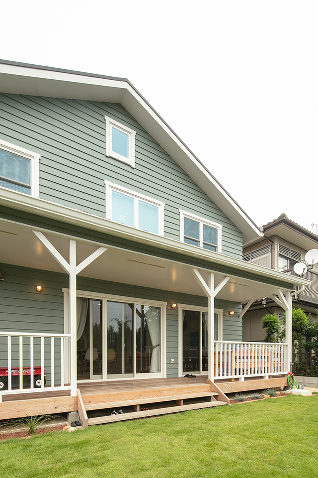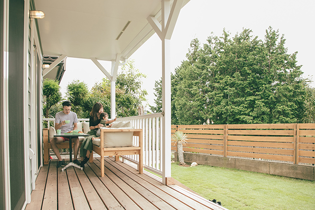 南側のカバードポーチです。大きなカバードポーチは、ご夫妻のかねてからのご希望でした。