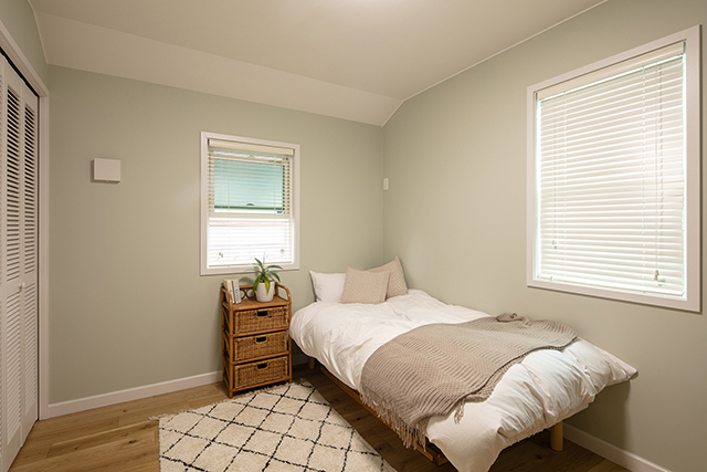 もうひとつの洋室です。淡い色のクロスがリラックスできる空間を作り出しています。
